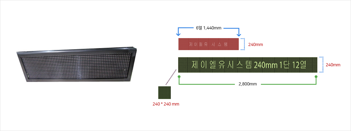 | 160-2-12 | 160*160mm | 2줄 12자 | 1920*320 | 1980*380 |
